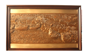 “金属锻錾”是以金、银、铜等金属为材料,采用锻打、錾刻等大小近40道复杂工序来制作艺术品的技艺。靳増明自幼受家庭熏陶,制作了包括《清明上河图》、《虢国夫人游春图》等大量精美的铜版作品,受到了各方的关注。该项目的作品以前主要用于古代宫廷生活和宫殿建设装饰中,在历史文化、艺术、民俗等方面都具有一定的研究价值。