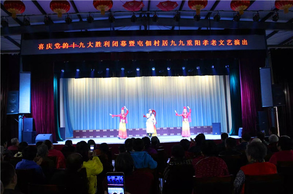 10月26日晚,西北旺镇屯佃村活动中心热烈庆祝党的十九大胜利闭幕,举行了喜庆党的十九大胜利闭幕暨屯佃村居庆重阳节文艺演出。