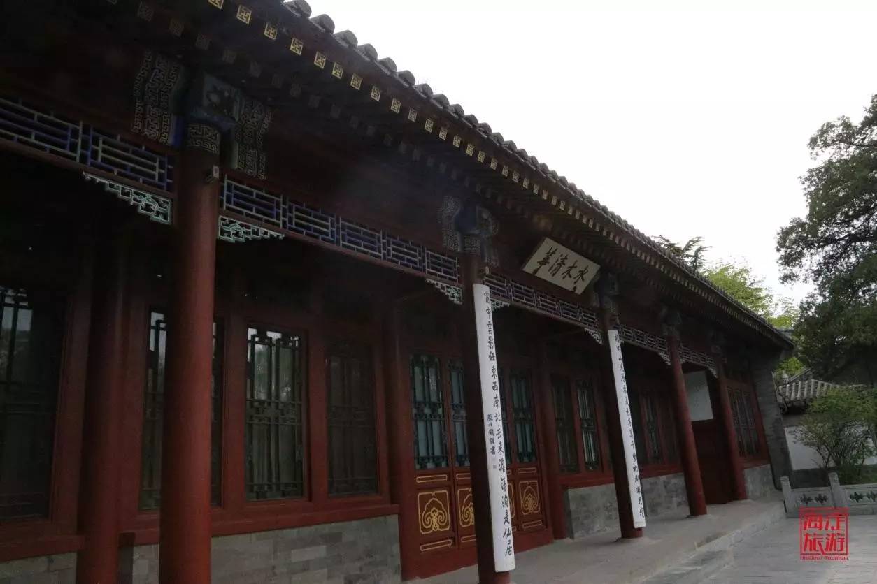 水木清华位于工字厅的北侧,相传康熙皇帝曾移步来到工字厅北侧,发现这里竟然是“山林变幻,环拢一泓清水;绿树点点,簇拥一栋古屋”。他不禁联想到晋朝谢混所作之诗:“景昃鸣禽集,水木湛清华。”于是,这位帝王欣然抬笔,题写下“水木清华”四字。