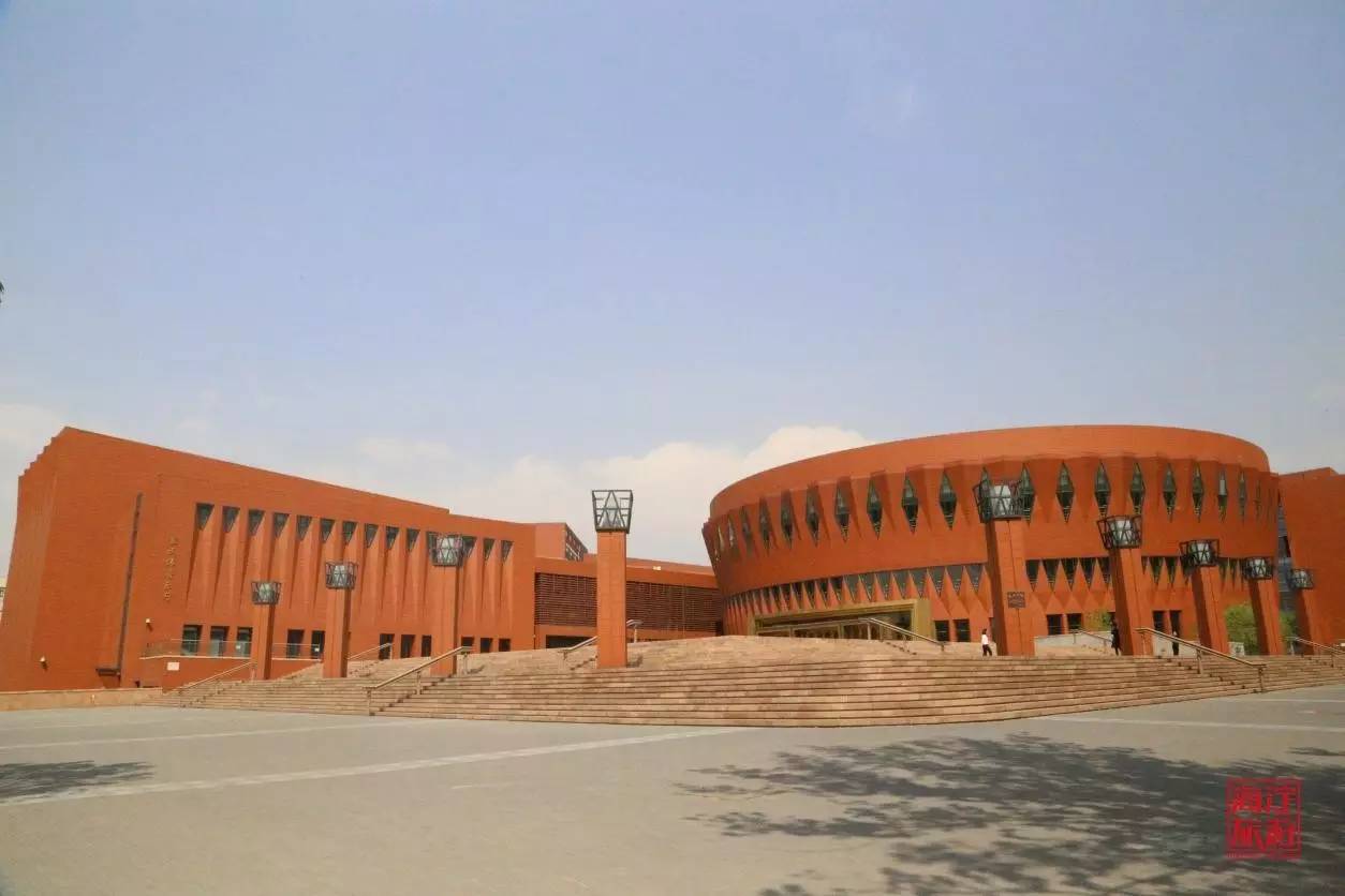 从清华南门进入直行,右侧的一个庞大的红色建筑群便是新清华学堂。它由清华大剧院、音乐厅和校史馆三部分组成。
