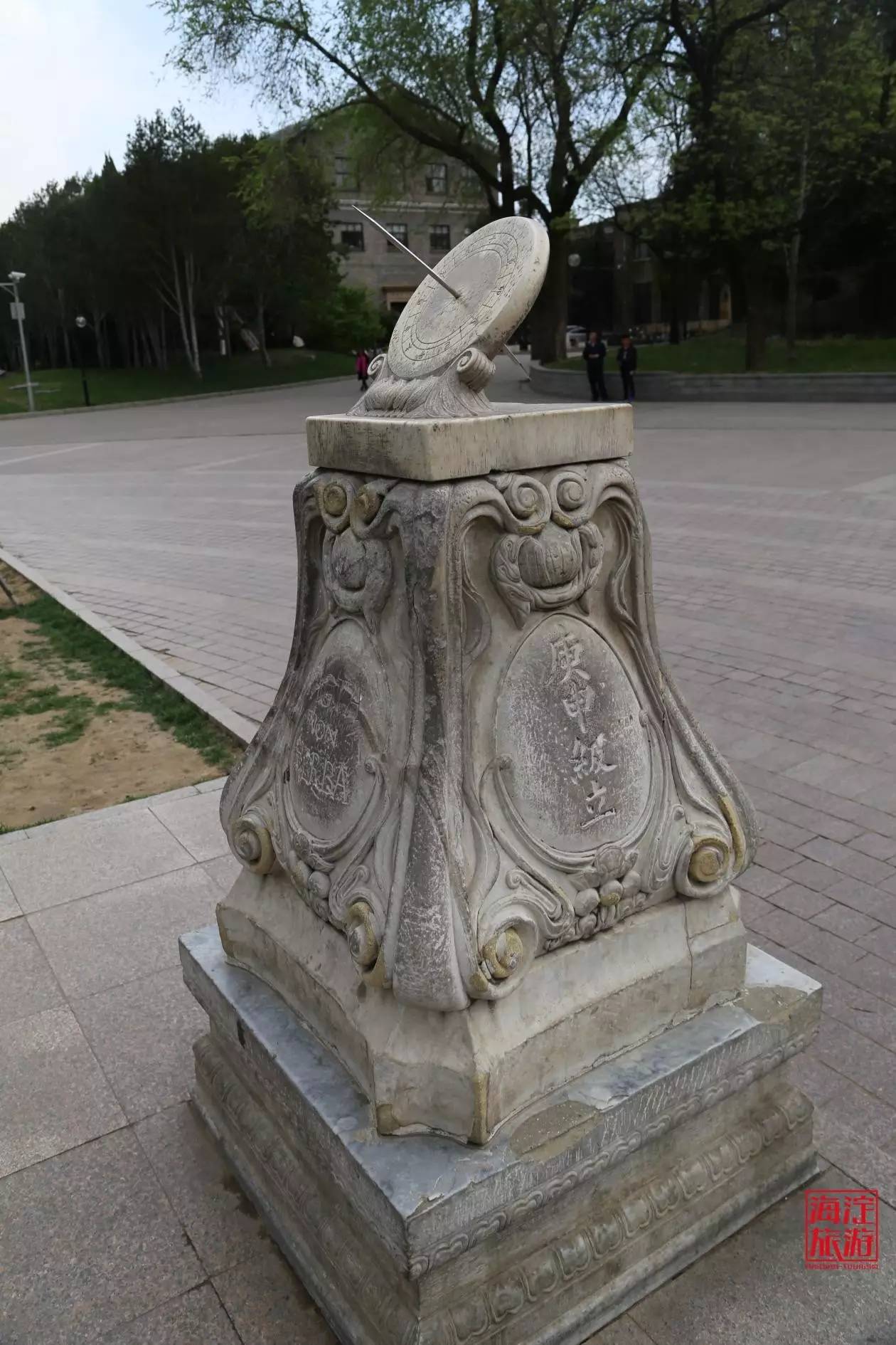 在大礼堂的正南方有一座日晷,是1920级同学毕业时献给母校的纪念物。“一语不能践,万卷徒空虚”,日晷一侧镌刻着“行胜于言”四个大字,很好的诠释了清华人实干的精神。