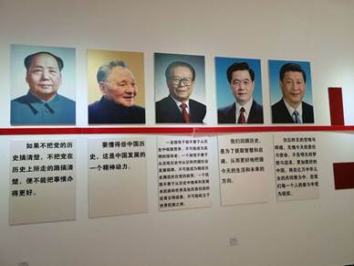 展馆最后是国家五代领导人的画像及寄语。习主席寄语,勿忘昨天的苦难和辉煌,无愧今天的责任和使命,不负明天的梦想和追求,更加美好的中国将在亿万中华儿女的共同努力中,在我们每一个人的奋斗中变为现实。