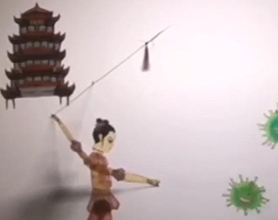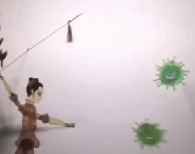 第一期征集的配音作品名为《八臂哪吒战病魔》。这是由海淀区区级非遗项目京西皮影戏代表性传承人王丽娟率领北京龙在天皮影艺术剧院最新创作的抗疫主题皮影短剧,他们用手中的影人致敬战斗在抗击疫情第一线的工作者们,为武汉加油,为中国加油!